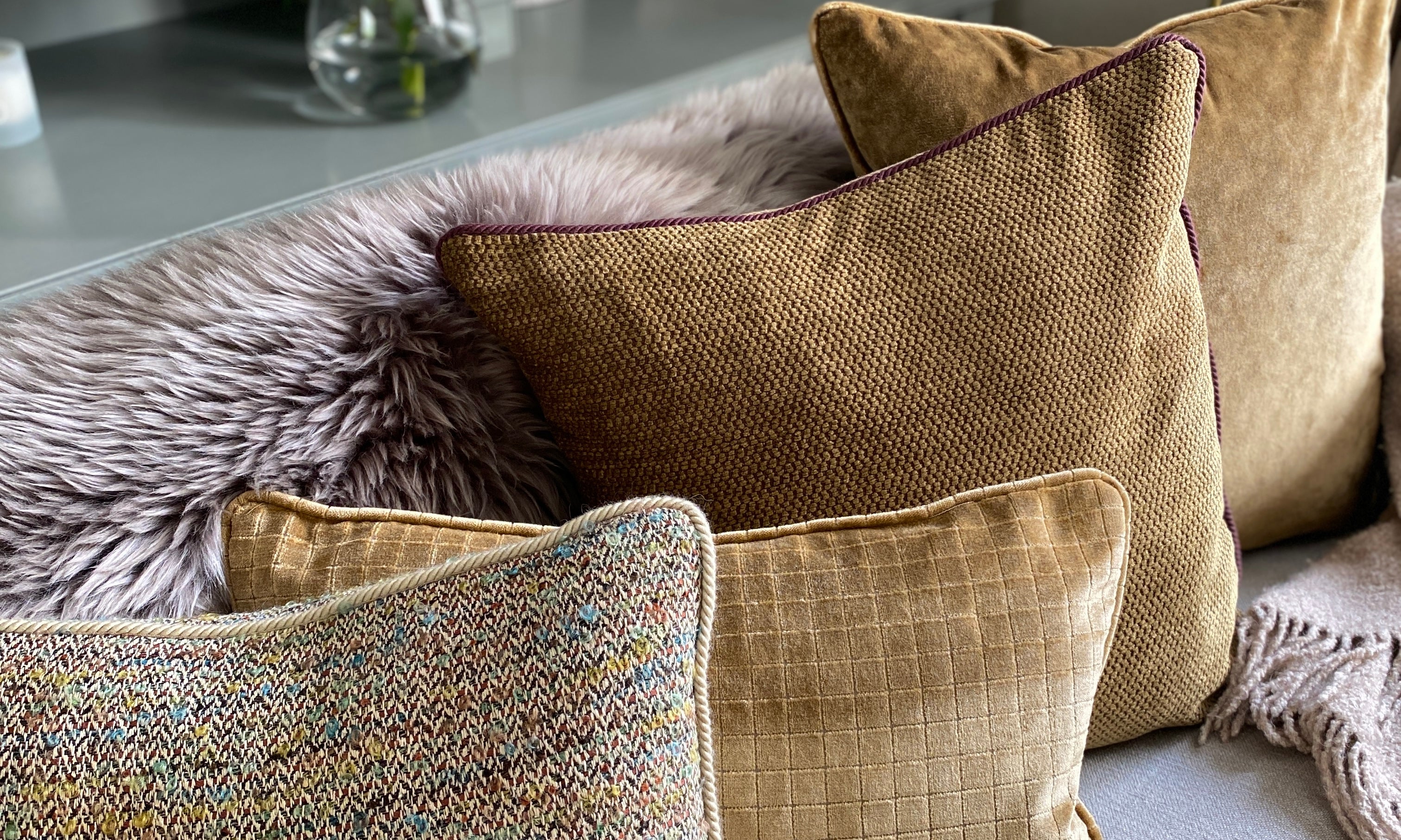 A sumptuous cushion collection featuring stunning velvets and tweed in hard to...