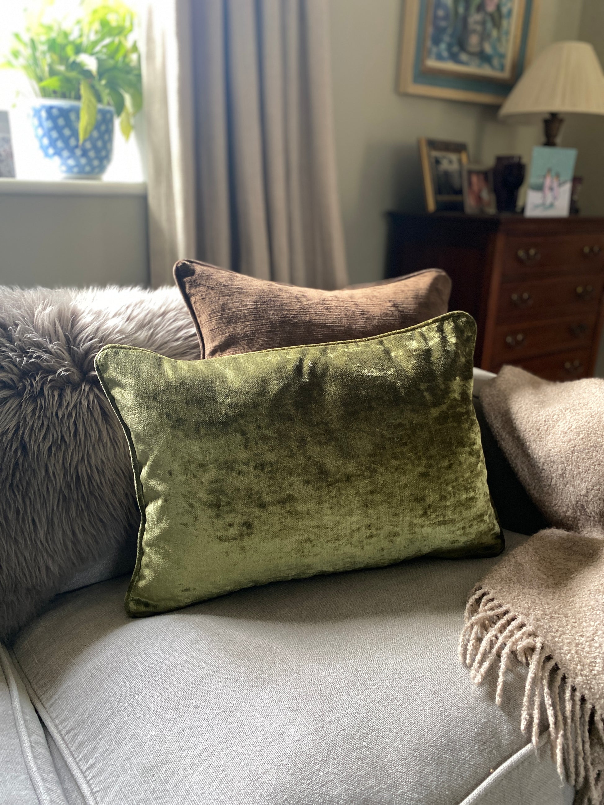 This chartreuse velvet cushion is a glorious shade of rich green with a slightly textured stripe within the velvet pile and is wonderfully tactile. Crafted by artisans who have mastered their skills over decades, it complete with a concealed zip and smart self piping around the edge. It also comes with an inner feather pad for wonderful plumpness and supreme comfort.